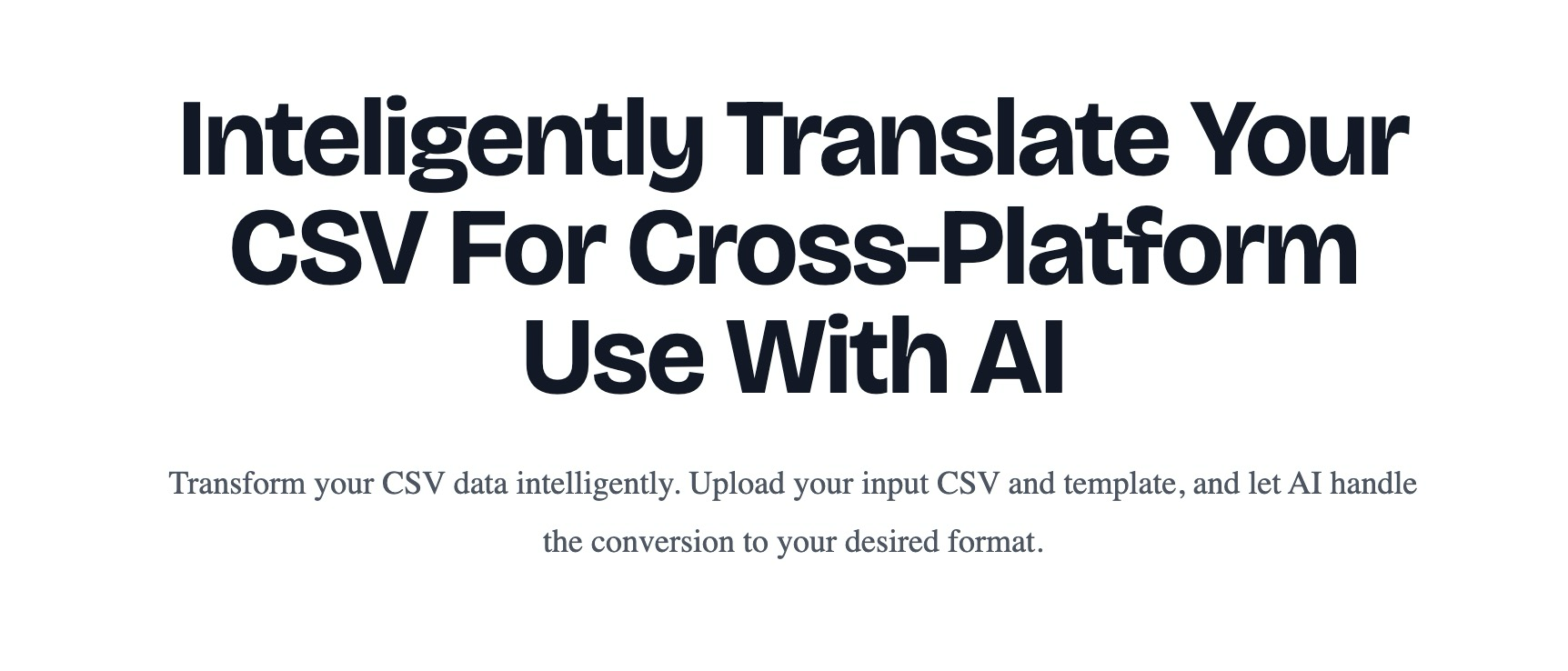 Built from within DEVx.Network Seamlessly convert CSV files between any platform, so long as they support import/export of CSV. Just upload your export file and template - we'll handle the rest with AI. No more manual data mapping.